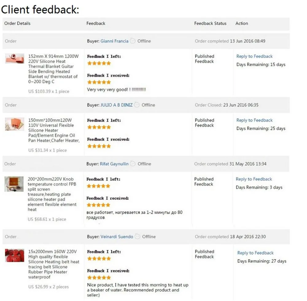 Basic specification: demension:15*3000mm voltage:220V Power:200W Special order according to your requirement is possible, please let us know your requirement in detail. We will manufacture for you and we will provide you the best price. Technical parameter: Temperature range: -40~250°C Power error: ±8% Power density: 0.1-1.2w/cm2 Mechanical pressure: 100.0kg/cm2 Insulation resistance: ≥50 MΩ Electrical strength: 1500v/5s Application: 1. Heat transfer machine heating plate 2. roasted cup (plate) machine heating film 3. Oil drum heater 4. Heat sealing machine heating film 5. Medical equipment heating insulation 6. Chemical pipeline heating 7. Large equipment heating 8. Semiconductor processing equipment 9. Various mechanical instrumentation heating insulation 10. Medical equipment, such as blood analyzers, respiratory therapies and hydrotherapy 11. Antifreeze for military installations, aircraft instrumentation and hydraulic equipment 12. Battery heating 13. Catering services 14. Factory engagement and local assembly? Any application requiring a soft shape or design 15. Analytical instruments 16. Aerospace 17. Antifreeze equipment ◇ petrochemical industry: gas transmission pipelines, pipelines, valves and other equipment with heat or maintain constant temperature ◇ chemical industry: transmission pipelines, processing containers, reactors, hot melt equipment, electric heating or maintain constant temperature ◇ beer industry: power plant boiler equipment heavy oil pipeline to maintain constant temperature ◇ food industry: food pipeline technology requirements to maintain temperature, mechanical equipment, such as winter frost protection ◇ Automobile industry: Dispensing robot, auto body and windshield compound Automatic glue-making equipment Electric heating or keeping constant temperature ◇ mechanical engineering: transport containers, vacuum chamber, hydraulic or pneumatic pumps, metering and transportation equipment with heat or maintain constant temperature ◇ Experimental research: sample gas analysis of the pipeline, industrial exhaust gas analysis of the pipeline heat or keep thermostat ◇ nuclear power plant: chimney exhaust gas analysis (exhaust sample sampling pipe with electric heat or keep constant) ◇ environmental protection projects: water treatment, cleaning system (underground pipeline with heat or to maintain constant temperature) ◇ offshore platform: oil pipelines, valves and other equipment with heat or to maintain constant temperature ◇ Other: paint equipment, wax equipment, heating or keeping thermostat how to order