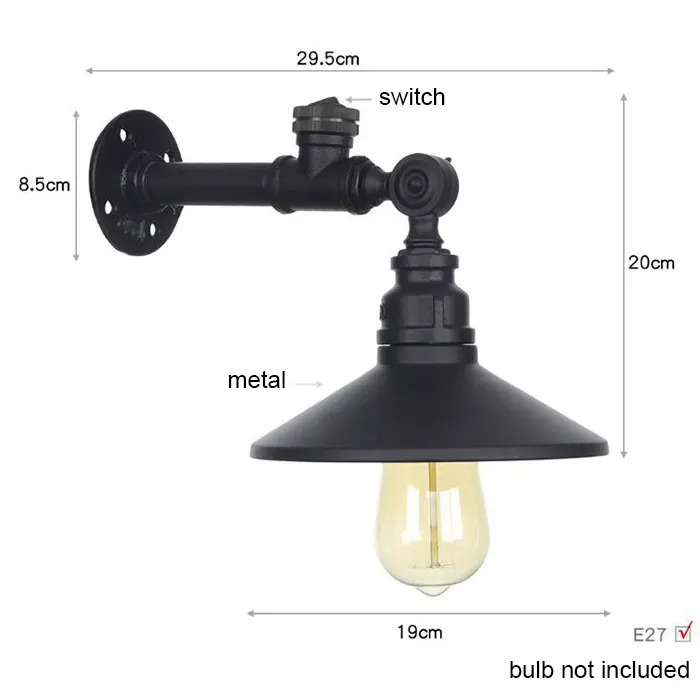 Американский Европейский стиль чердак лестницы железная труба Настенные светильники с переключателем черный деревенский бронзового золотого серебряного цвета металлический абажур бра