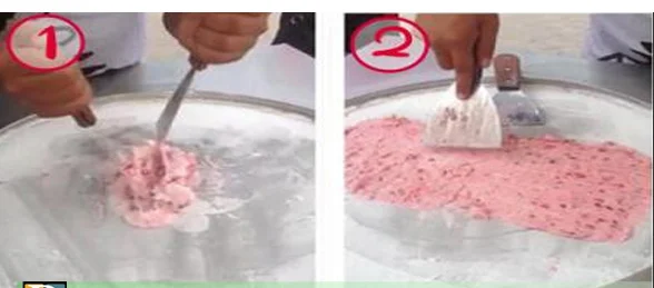 1. Эта машина для жареного льда для продажи проста в эксплуатации, подключается к источнику питания И включите переключатель охлаждения, прежде чем перемешать смесь напитков, таких как сок, Молоко, Коко, с доступной лопатой для льда |