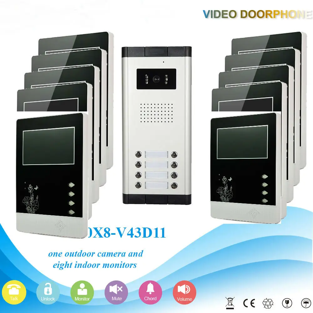 4,3-дюймовый цветной ЖК-провод, видеодомофон, дверной звонок, домофон, система входа, комплект ночного видения для 6 единиц квартиры