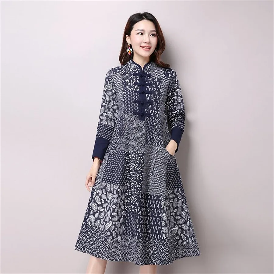 Осеннее элегантное удобное женское платье большого размера, свободное хлопковое льняное платье в стиле ретро, высококачественное женское платье M-XXL, FC161, 2020