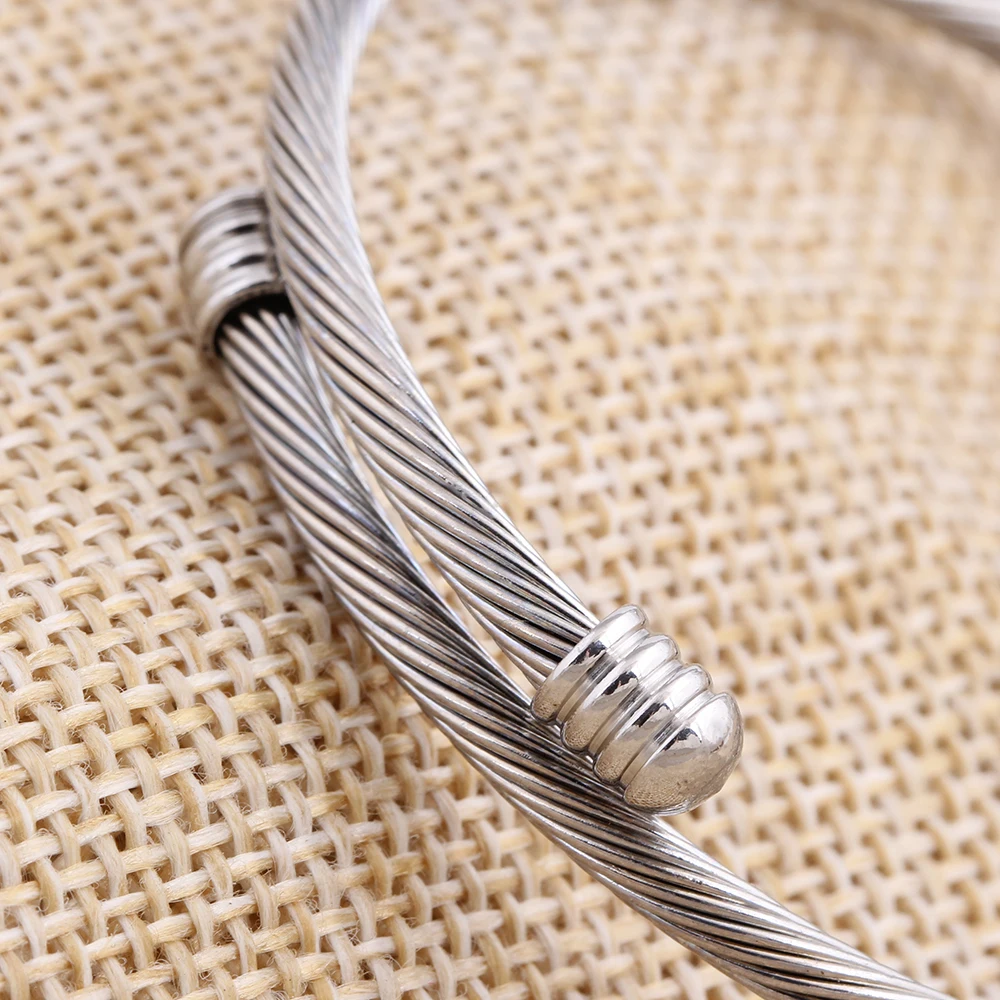 Stainless Steel Open Cable Wire Bangles Bracelets For Womens Silver Plated Famous Brand Jewelry Ladies Cuff Bangle