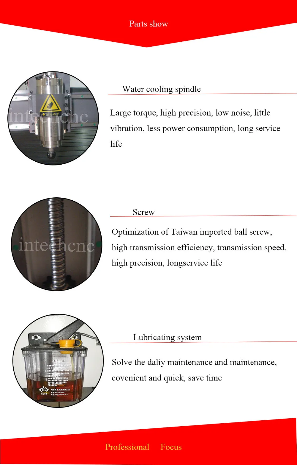 1. Adopt constant power 3.0kw water cooling spindle
