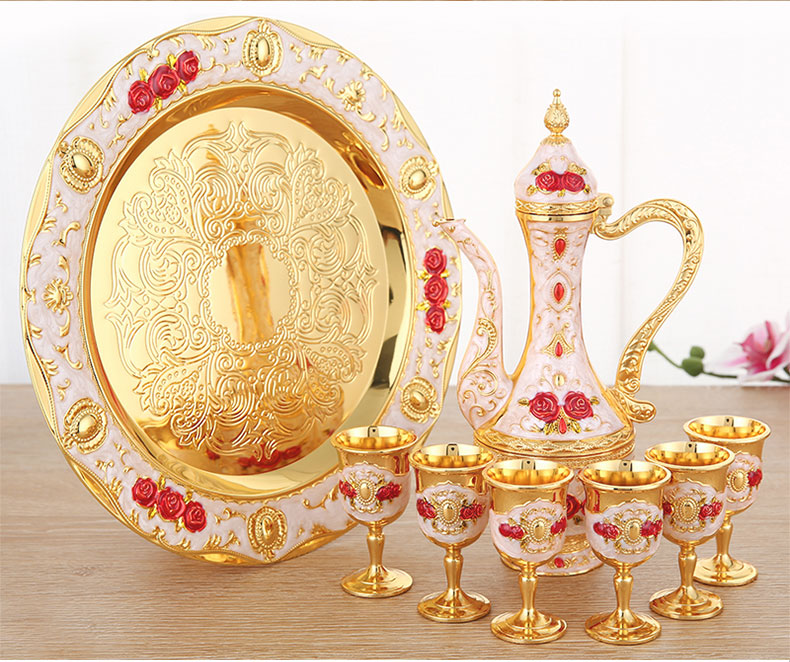 Модные чайные сервизы из цинкового сплава, золотой и синий цвет, металлический винный чайный сервиз, посуда для напитков, высокое качество, аксессуары для домашнего питья, принадлежности