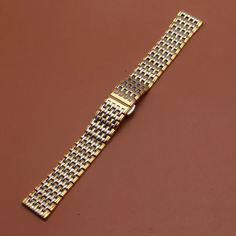 Оригинальный серебристый и золотой ремешок для часов из нержавеющей стали, металлический браслет с застежкой-бабочкой, ремешок для мужских кварцевых часов 18 мм 20 мм 22 мм