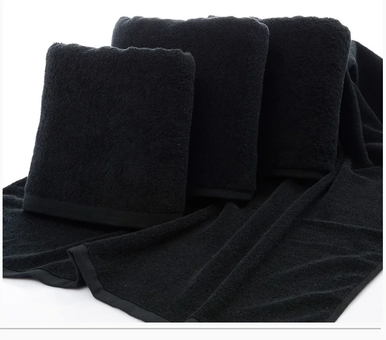 Black Solid Terry Cotton Bath Towel High quality Luxury Hotel Bath Towel Bathroom Towels Materials: 100% cotton Size: 70*140cm Color: Black Weight: : 400g/pc and 500g/pc Type: black cotton bath towel Packing: 1x Towel Note: Please allow 1-3cm differences due to manual measurement.