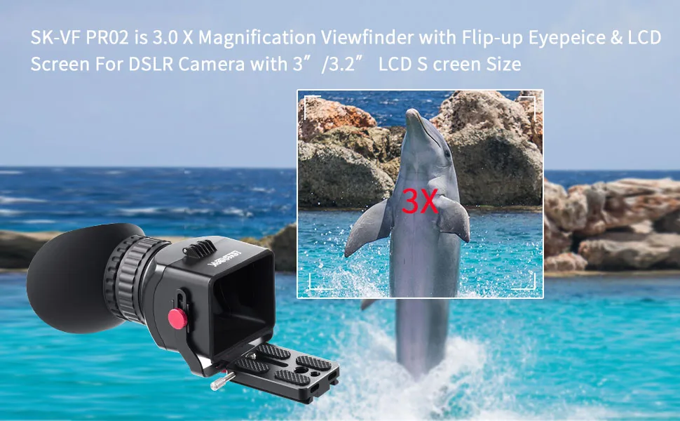 SK-VF Pro 2 представляет собой 3.0x видоискатель предназначен для зеркальных камер с 3 "/3,2» ЖК-дисплей экран. Он оснащен фокусным увеличением 3,0x, оптическим объективом, противотуманным защитным чехлом, наглазником, предотвращающим утечку светильник, Диоптрий диаметром 43,5 мм и т. Д. Он был подключен к камере с помощью инновационного магнитного быстрого крепления, который вставляет в опорную пластину Manfrotto 501PL. SK-VF Pro 2 предлагает регулируемое диоптрическое, что увеличивает ЖК-дисплей изображения на коэффициент 3,0.