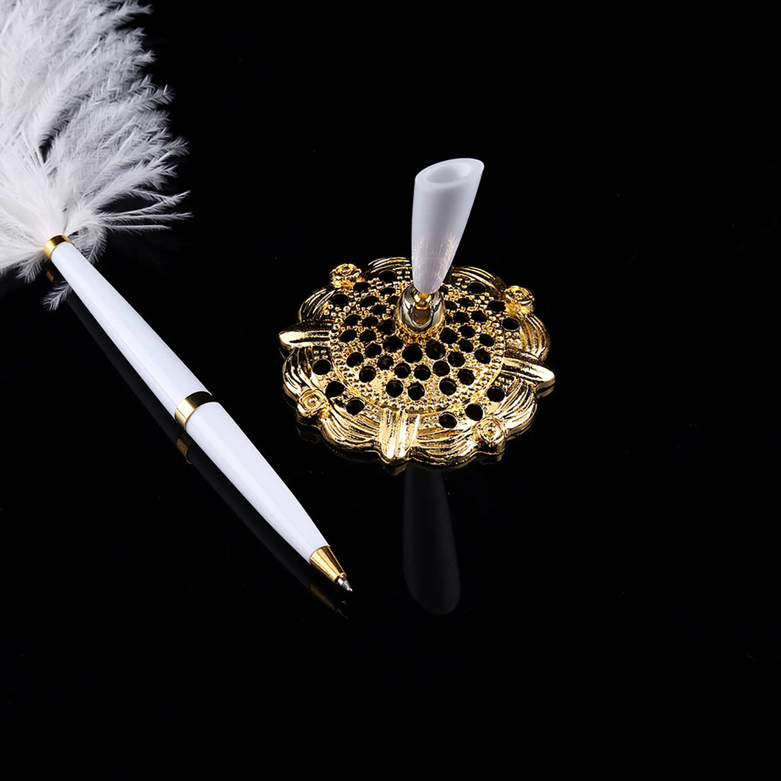 White feather, white pen and gold/silver holder makes it look elegant and delicate.