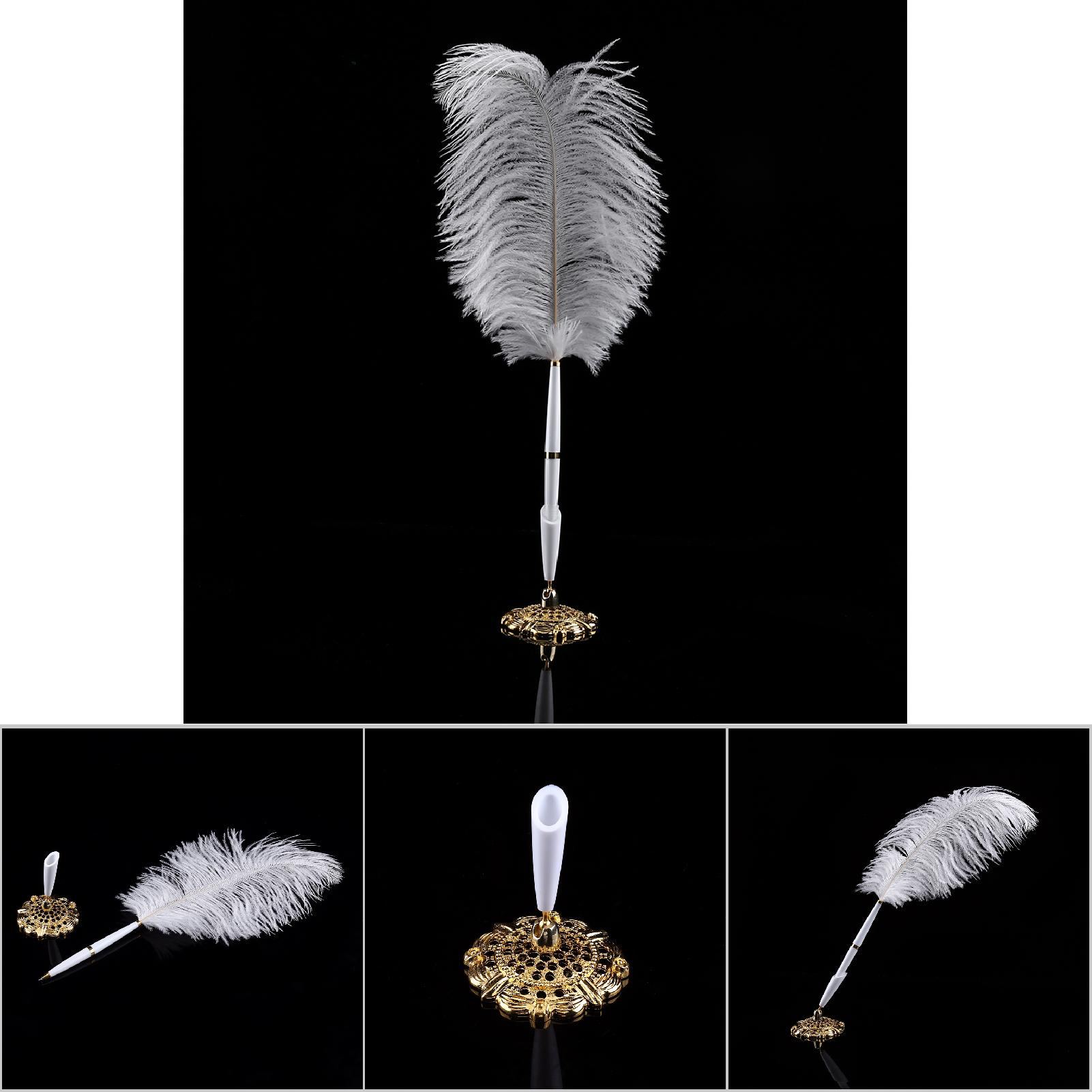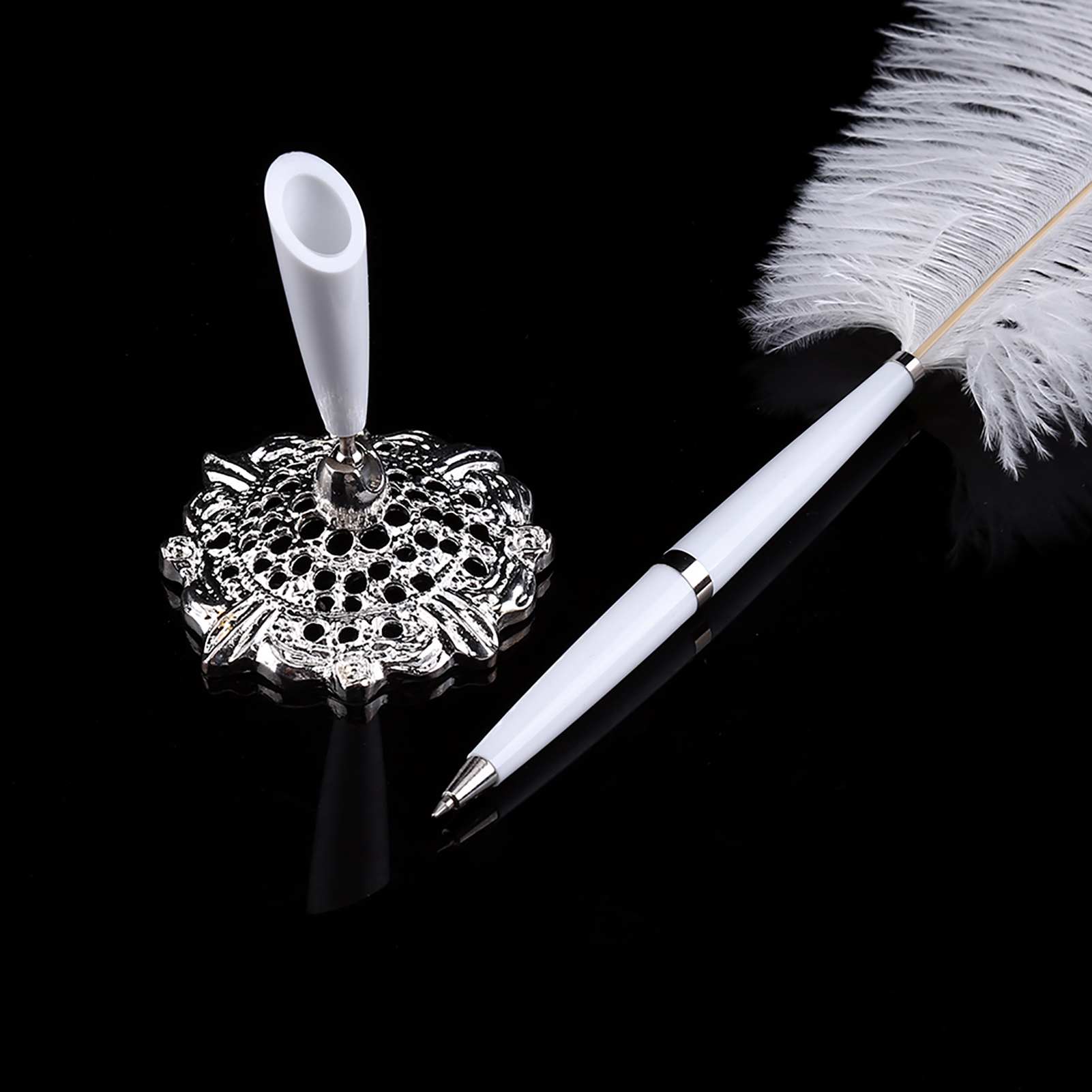 Our Ostrich feather signing pen is a great decoration in wedding, ceremony or reception etc. Its white feather, white pen and gold/silver holder makes it look really elegant and delicate. And it has exquisite packaging, you could send it to your friends or family as a gift. Such a beautiful and practical signing pen, you're worth it!