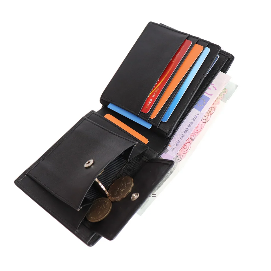 Название бумажника: мужской кошелек в итальянском стиле, короткий черный горизонтальный бумажник из натуральной кожи, мужской кошелек с отделением для карт и карманом для монет 264