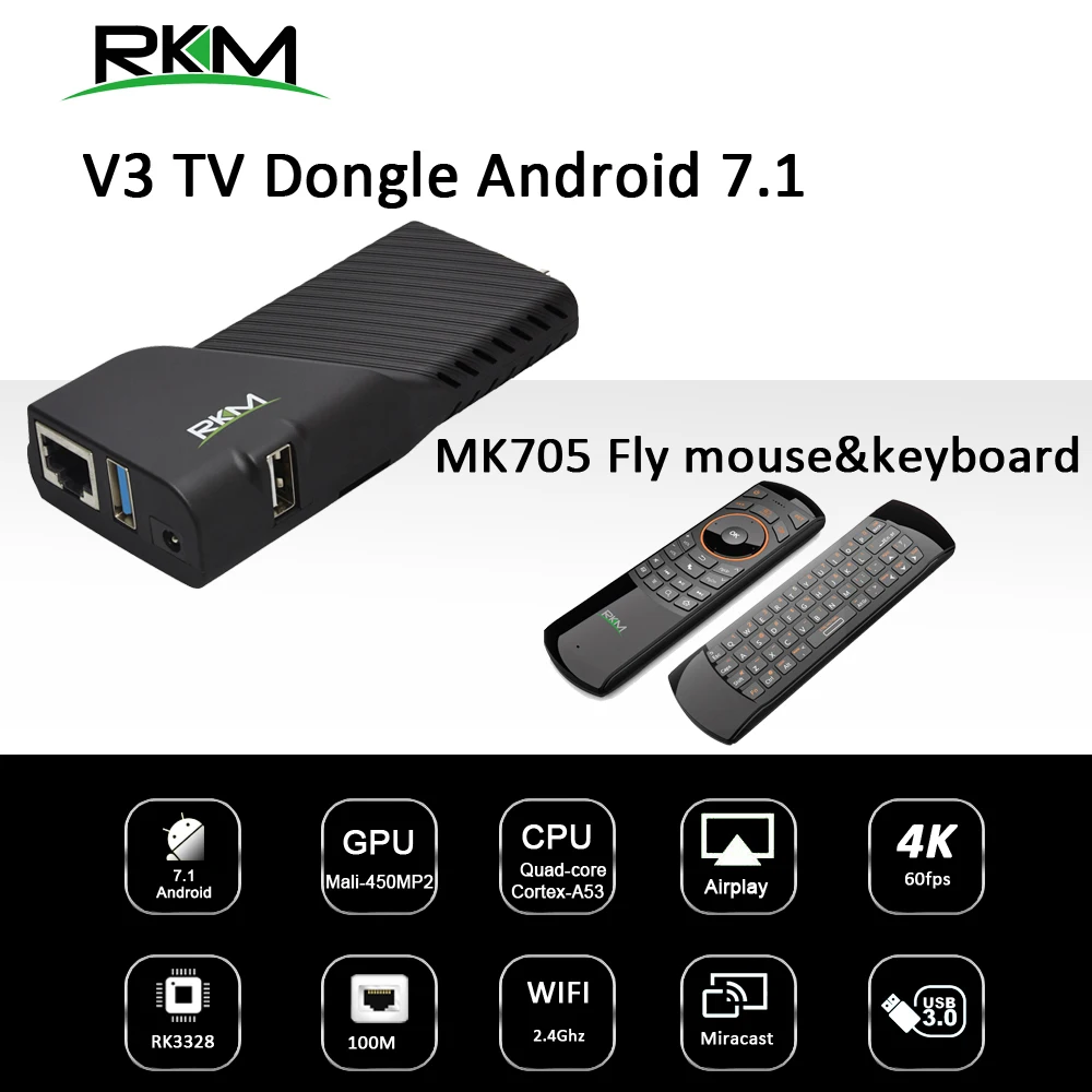 Android 7.1 TV BOXRK3328 Rockchip 2 Гб 16 Гб 2,4G WIFI 100 м --- медиаплеер и мышь fly RKM V3 + MK705