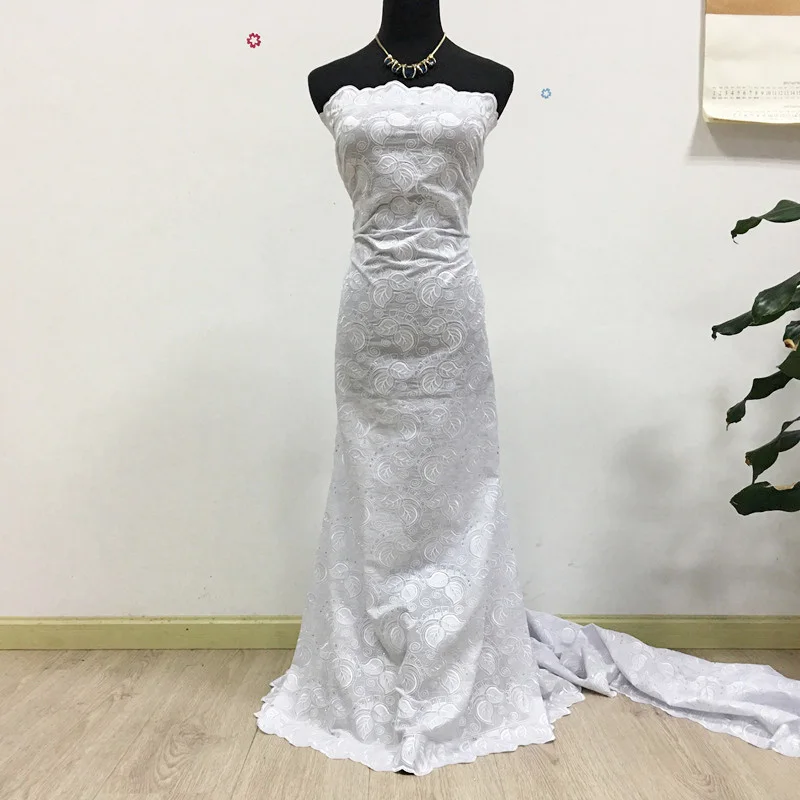 Африканский швейцарский хлопок вуаль кружева, посылка: 5 ярдов, материал: 100% хлопок кружева с камнями.Возврат: