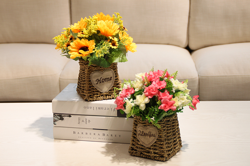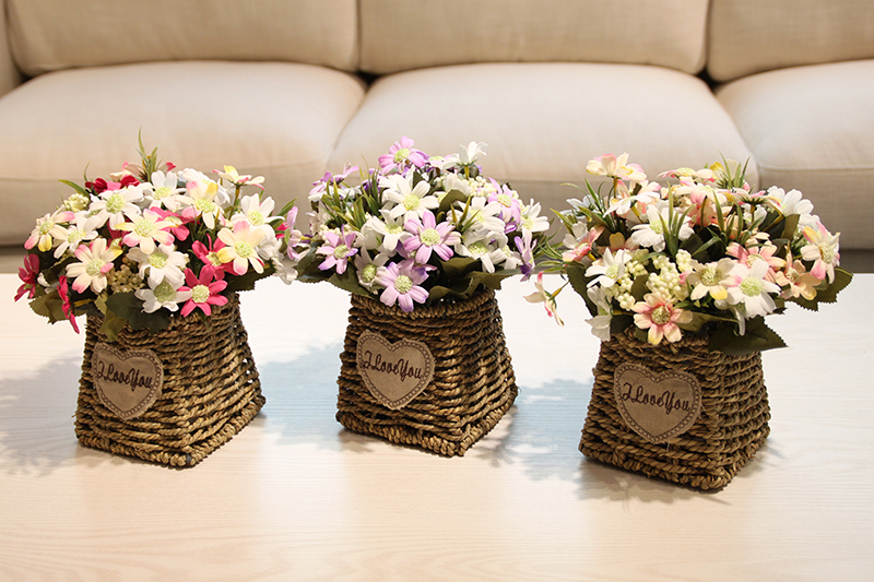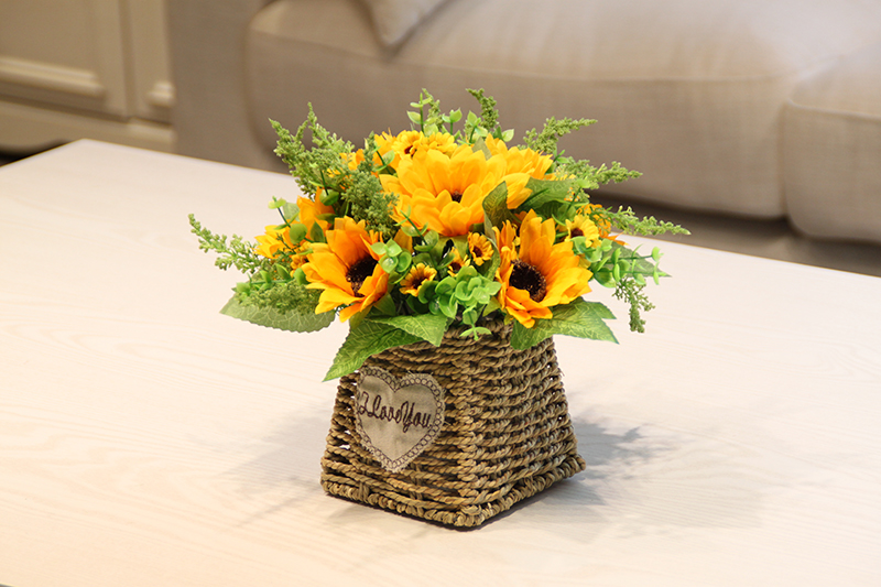 Имитация цветов Подсолнух роза цветок ротанга Цветочная корзина Цветочная композиция синий костюм романтическая пасторальная Цветочная корзина