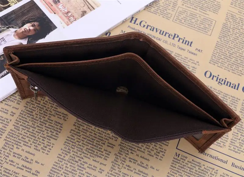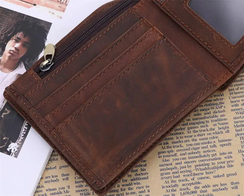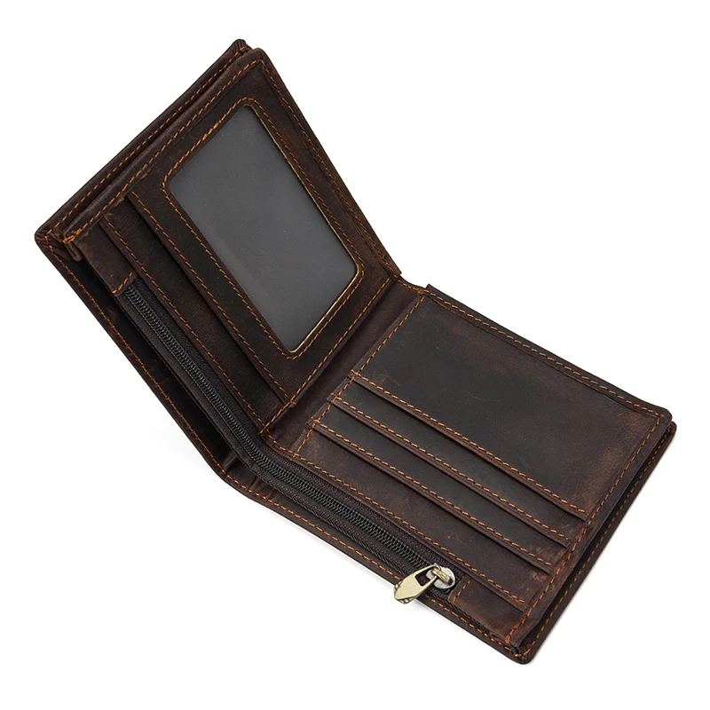 Материал: 100% натуральная кожа Вес: около 0,15 кг Дизайн: мужской кожаный короткий кошелек Структура: 3 держателя для карт + 1 держатель для фотографий + 2 кармана для наличных денег + 1 карман на молнии