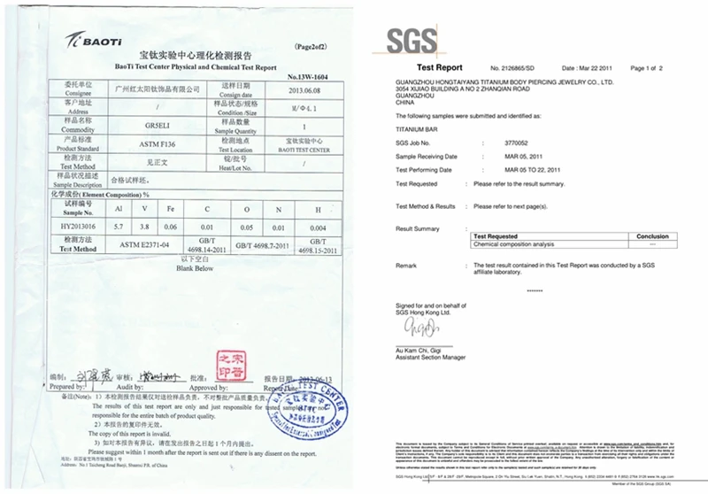 Дважды SGS сертификаты и Китай отечественный титановый материал сертификации