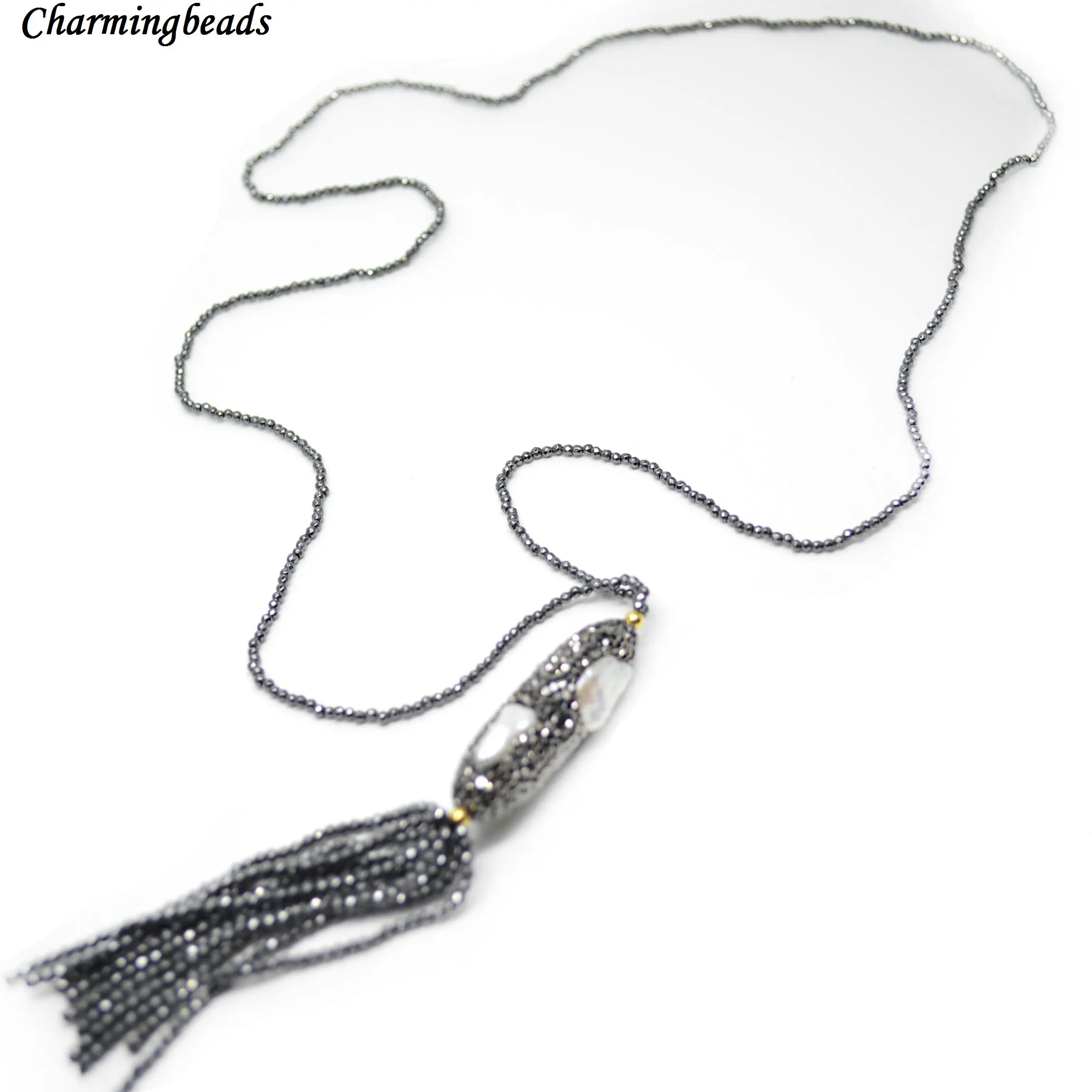 Проложенные черные стеклянные бусины с длинной трубкой, бисер с кисточкой, ожерелье с подвеской