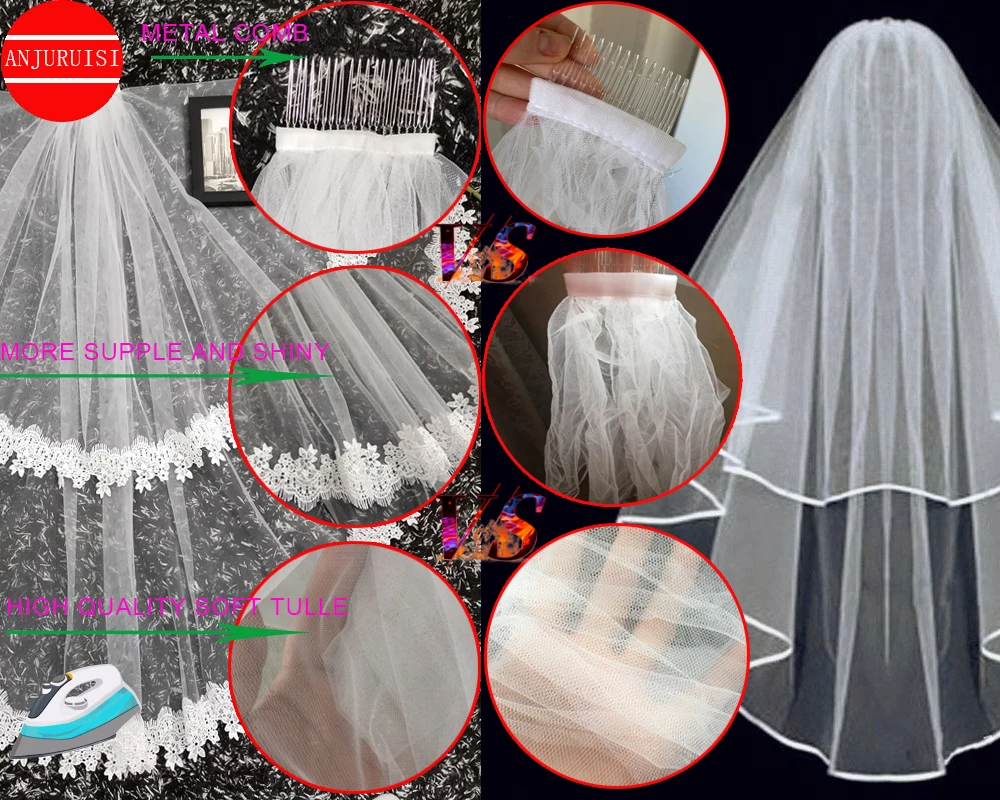 Материал: хороший Тюль + металлическая расческа Цвет: белый, слоновая кость Характеристики: двойной слой, первый слой 60 см, второй слой 80 см (с расческой для волос) Состояние: 100% новый бренд Посылка: 1 вуаль для невесты (с расческой)