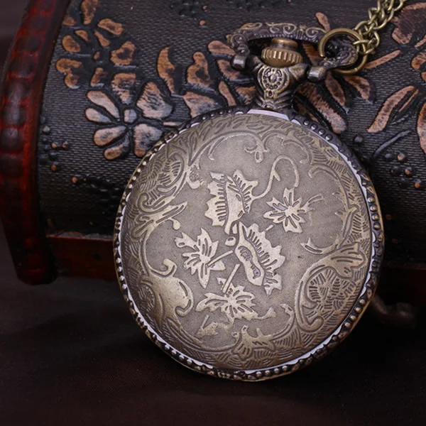 2017 винтажные антикварные подарок для папы бронза узор кварцевые карманные часы с ожерельем кварцевые часы Fob часы подарок на день отца