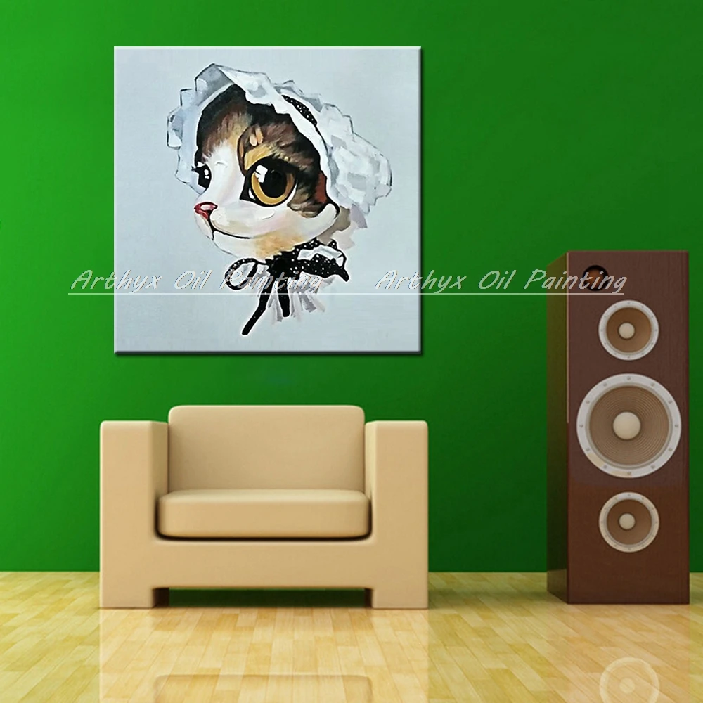 Описание товара:Arthyx настенные картины, ручная роспись, мультяшный Кот, животные, Масляные картины на холсте, современный абстрактный поп-арт для комнаты, домашний декор, художественное оформление.