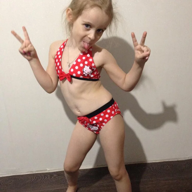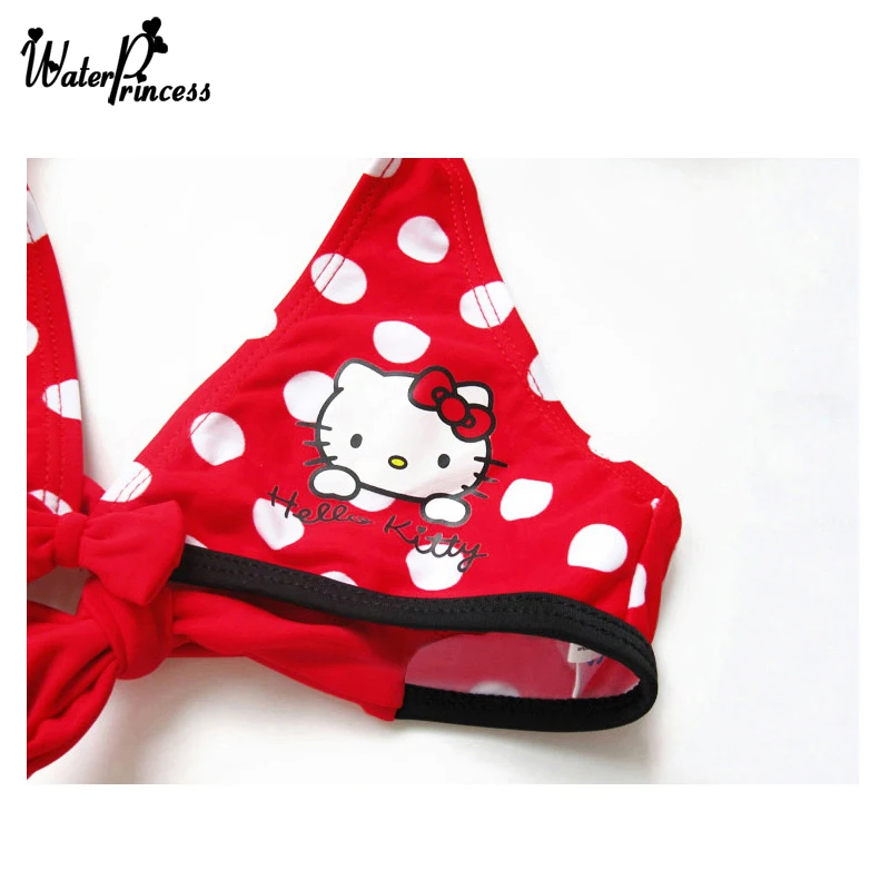 Коллекция 2021 года, милый купальник для девочек с принтом «Hello Kitty», Детский комплект бикини с рисунком, детский купальник, 2 предмета, красный, розовый, детский купальный костюм в горошек