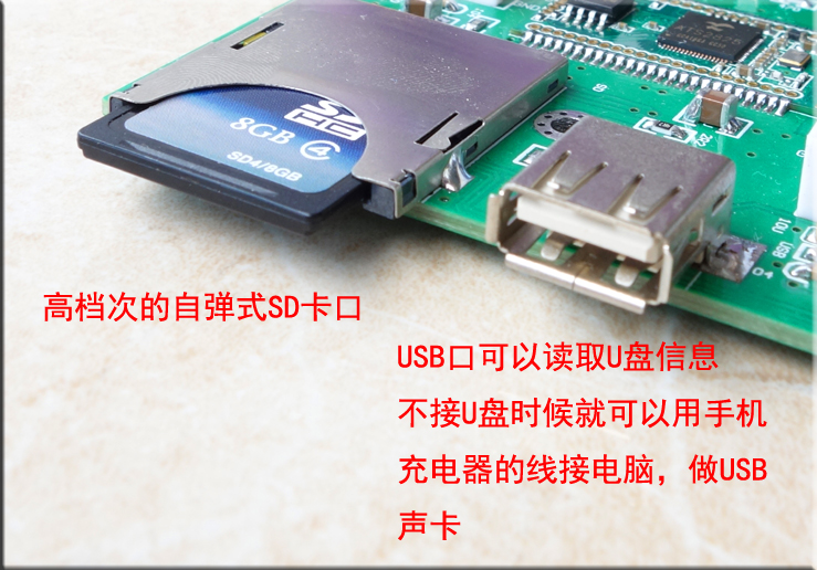 4. Sd-карта использует высококачественный разъем типа самостоятельной пружины, чувство работы на месте, sd-карта вставлена в режим, нажмите кнопку переключения, вы можете автоматически воспроизводить музыку.