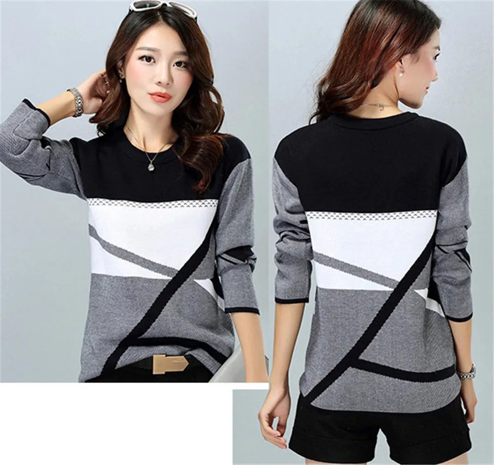 Весна/Осень Новые женские свитера вязанные Большие размеры вязанные пуловеры свитера женские с длинным рукавом Зимний свитер женский OK066