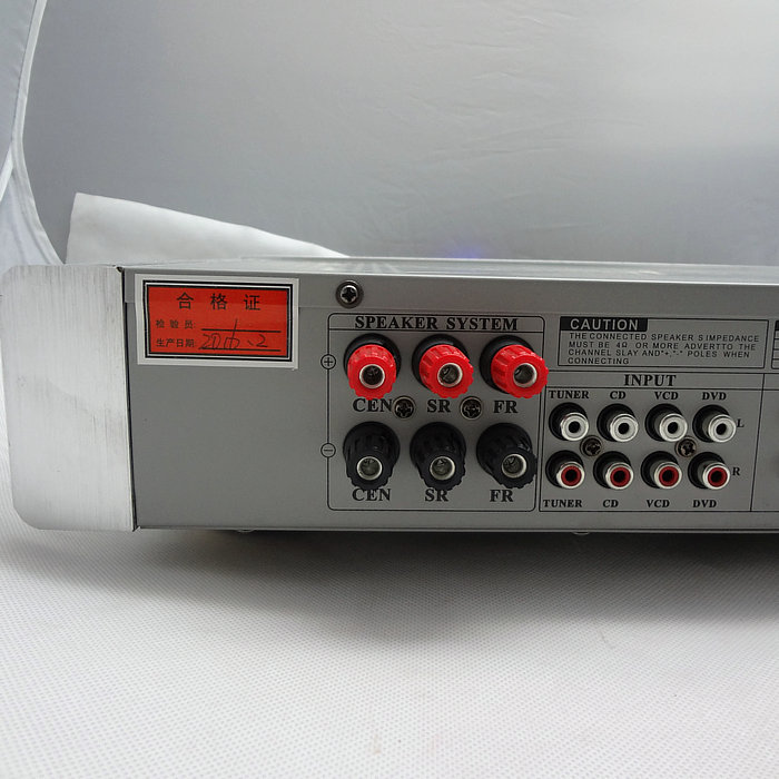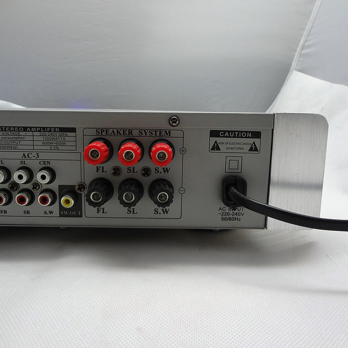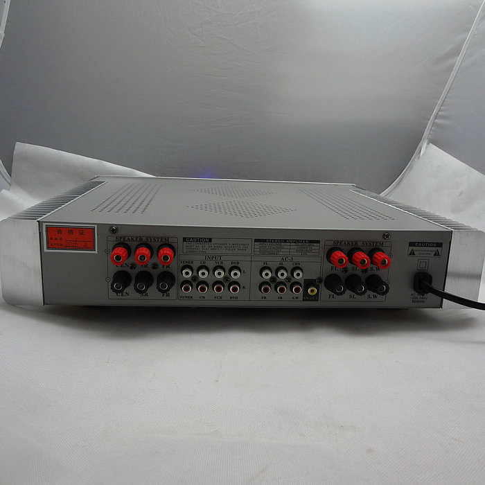 Impedance: 4-16 ohms Channel: 5.1 Weight: 10.5KG Output power: 600 + 600W, Around: 10-40W, Bass: 120W can External Bluetooth Receiver!