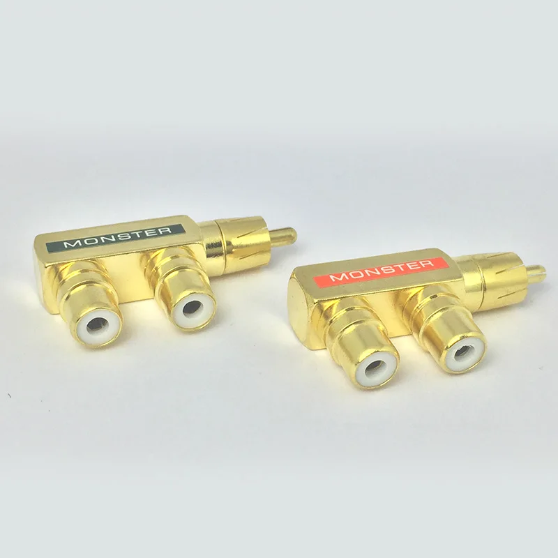10pcs/lot RCA Connector Splitter 1xRCA Male Plug to 2xRCA Female Jack Adapter Gold Plated Audio RCA Coupler Converter