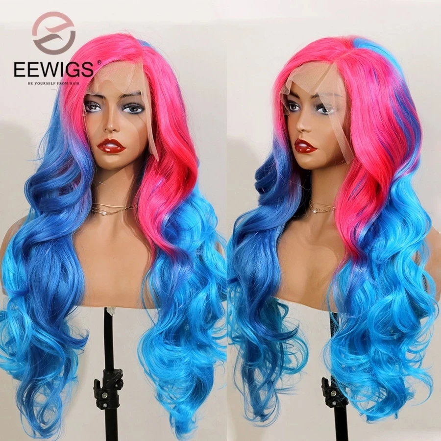 Цвет волос: синий, розовый, Омбре, кружевной передний парик