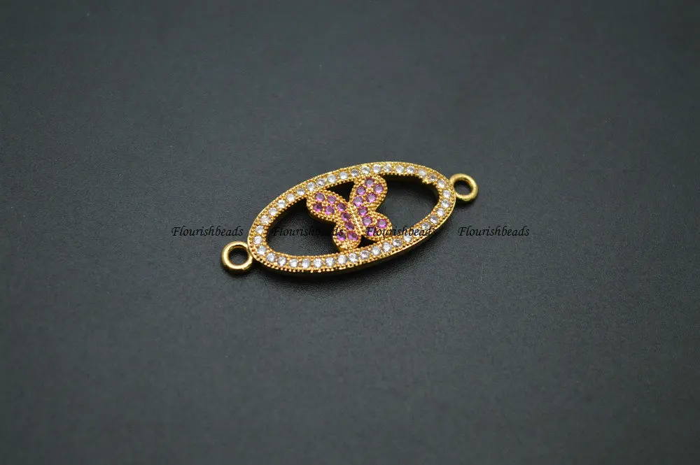 Проложенный Белый CZ металлический Овальный тег Бабочка Шарм Ювелирные Разъемы