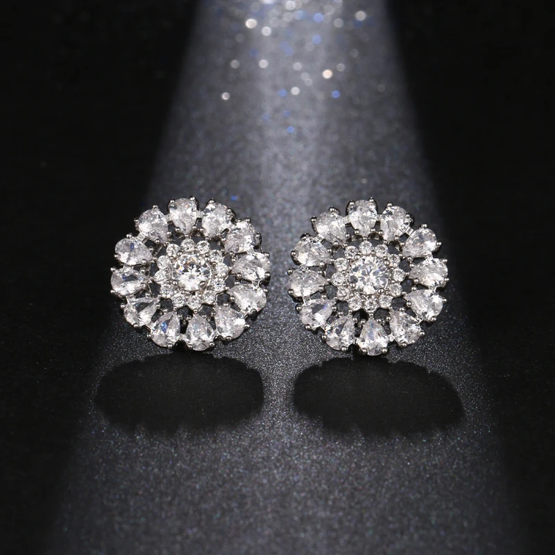 Женские серьги-гвоздики из серебра 925 пробы с кристаллами циркония Ювелирное
