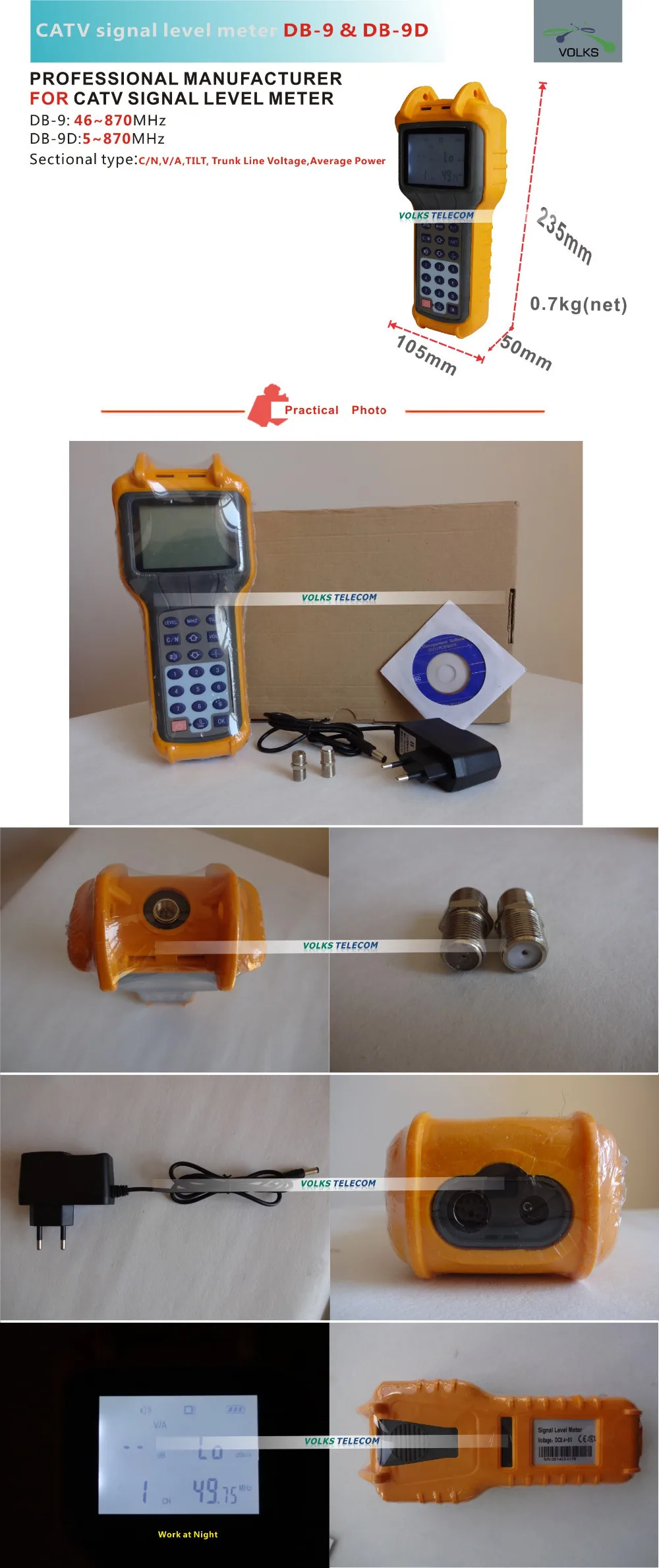 Измеритель уровня сигнала дБ DB-9-это инструмент, используемый для проектирования и обслуживания аналогового телевизора, а также измерения уровня ТВ сигнала в канале и частотном режиме. Также он может измерять наклон CATV, C/N, напряжение кабеля багажника и так далее.