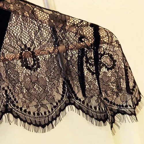 Женская шифоновая блузка черная с кружевом длинным рукавом | одежда