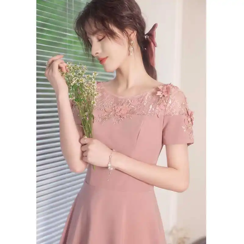 Принцесса Новое Розовое короткое вечернее платье Цветочная аппликация кружева короткий рукав винтажное элегантное вечернее платье на выпускной платье Robe Soriee