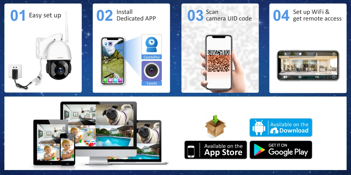 Эта WiFi PTZ камера поддерживает максимум 5 пользователей онлайн одновременно. Если вы подключаете камеру к роутеру с помощью кабеля Ethernet или подключаете ее к домашней сети Wi-Fi, вы можете получить доступ к ней удаленно через телефон (поддерживает оба Android), компьютер или браузер IE. Воспользуйтесь этим Удаленным видом P2P, вам не придется беспокоиться о том, что ваш дом/бизнес/офис не в безопасности. Вы можете проверить статус в режиме реального времени в любом месте и в любое время.