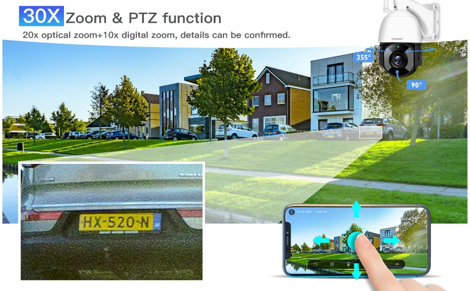 Камера может вращаться на 355 ° по горизонтали и на 90 ° по вертикали, закрывая гораздо больше мест и не оставляя слепых пятен. Получите ультра-широкий угол обзора с простым управлением направления через приложение на телефоне. Вы можете следить за своим крыльцом, подъездной дорожкой или хранить с помощью камеры.