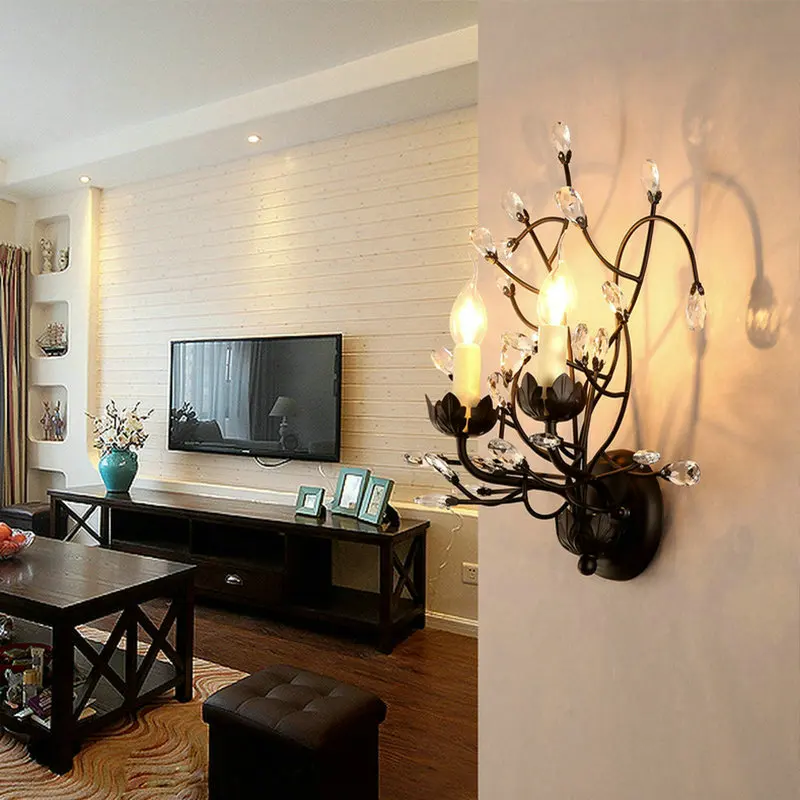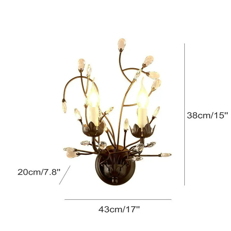 Материал: металл, хрусталь Цвет: прозрачный, бронзовый Гнездо: E14 * 2 (лампа не входит в комплект) Напряжение: 85-265 в (Универсальный в мире) Высота: 38 см/15 дюймов Диаметр: 43 см/17'' Вес: 2 кг