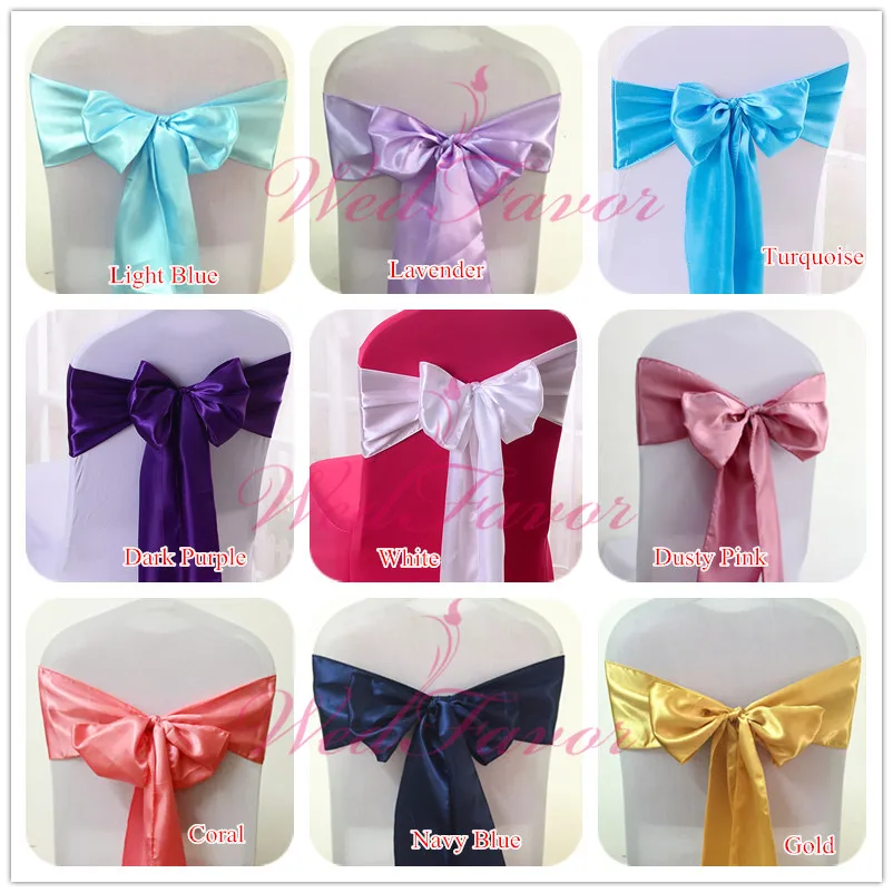 WedFavor 10 шт высокое качество свадебные атласные ленты на стулья Банкетный стул бант ленты Галстуки Для Свадьба события вечерние украшения отеля