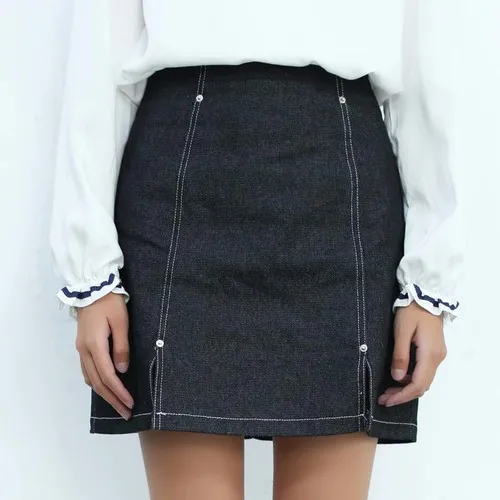 Black Denim Skirts Womens 2017 Korean Casual Split Over High Waist A Line Blue Jeans Skirt Retro Mini Skirt saia jeans B153