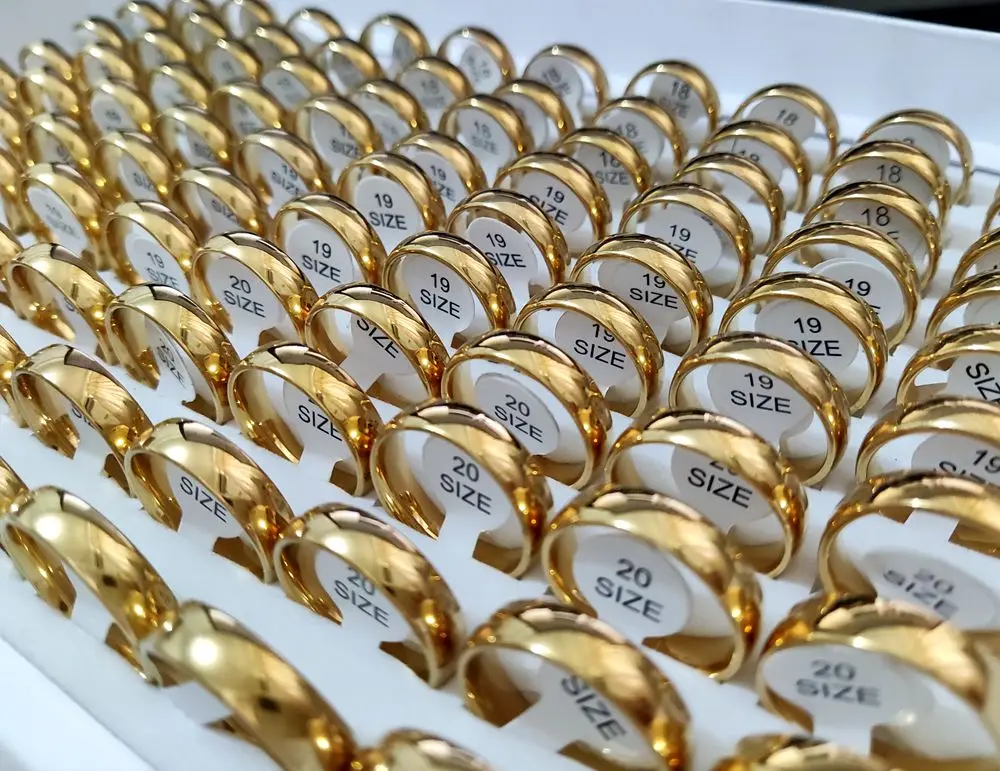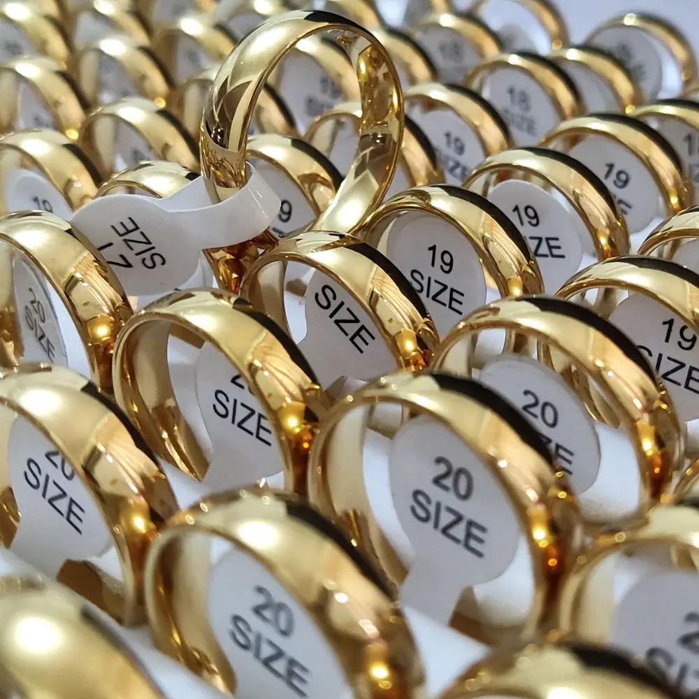 50 шт., золотые классические обручальные кольца 6 мм, мужские и женские кольца из нержавеющей стали, обручальные мужские кольца