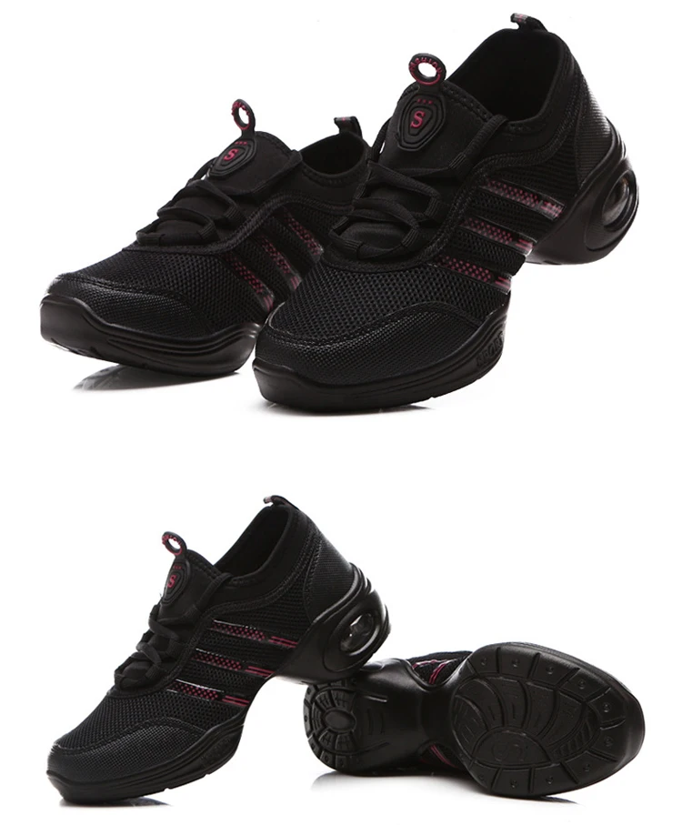 Женская танцевальная обувь в стиле джаз, хип-хоп, сальса, кроссовки с мягкой подошвой, сетчатая танцевальная обувь для девушек, черно-белая Современная танцевальная обувь