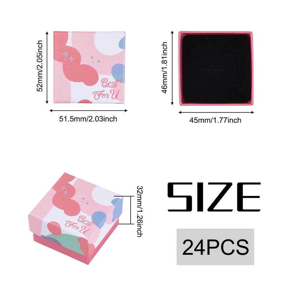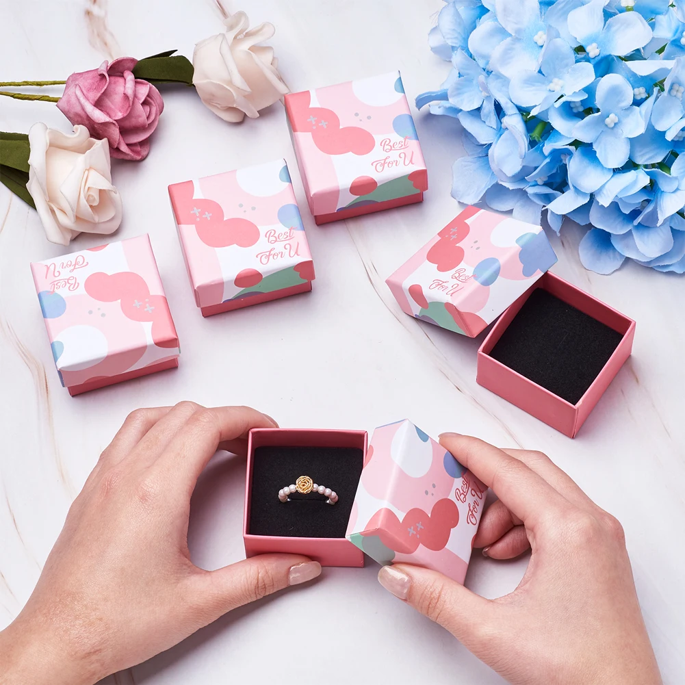 Картонная коробка для ювелирных изделий, квадратные упаковочные коробки, кольца, браслеты, серьги, Подарочная коробка для ювелирных изделий, узор подсолнуха с губкой, 24 шт./лот