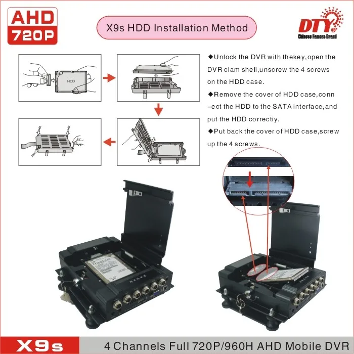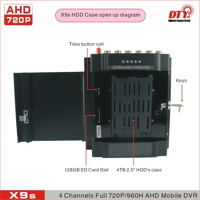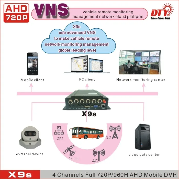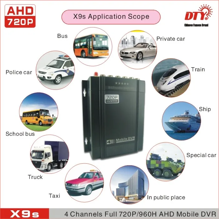 X9s-профессиональный, прочный, твердотельный видеорегистратор, предназначенный для записи в автомобиле. X9s видео регистратор принимает H.264 формат сжатия, запись продолжительностью до 4 канала видео и аудио в одно и то же время, поддерживает жесткий диск до 4-х никель-металл-ТБ, а также SD карты до 128 ГБ для Сохранение видео клипы. Разрешение видео до 720P каждого канала, и частота кадров до 30 кадров в секунду (PAL).