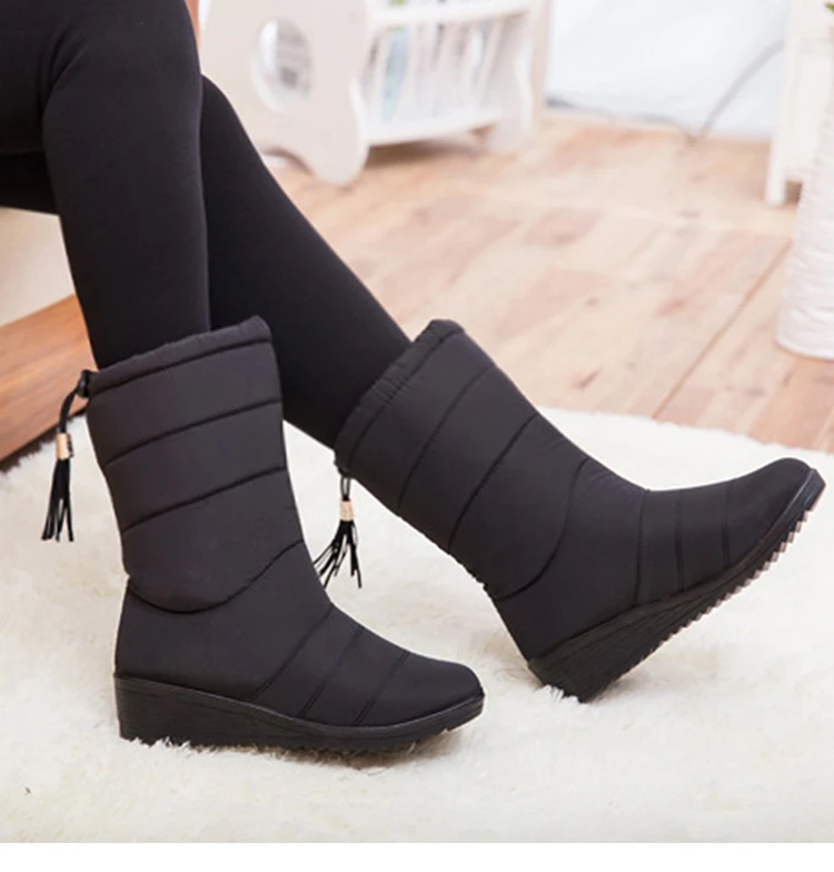 Модные женские ботинки, зимние ботинки с кисточками, женские зимние ботинки на пуху, женская теплая зимняя обувь, большие размеры 44, ботинки средней длины до голени