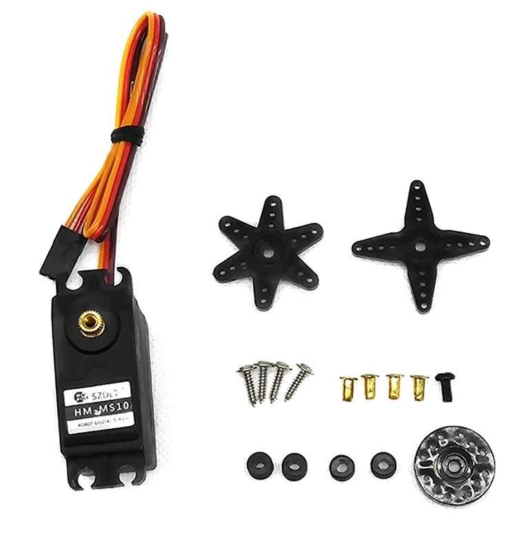Посылка включает в себяHM-MS07 сервопривода 5 шт (или HM-MS10 сервопривода 5 шт), Сервопривод MG90S (2 шт.).
