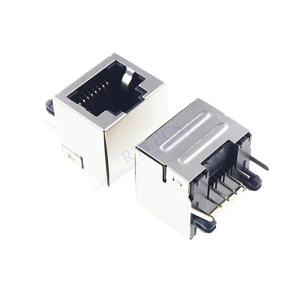 RJ45 одиночный порт экранированный модульный разъем PCB 8P8C правый угол через отверстие PCB Ethernet разъем Tab Направление вверх 1 порт