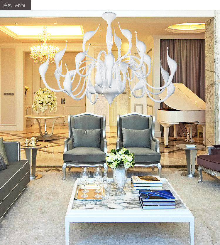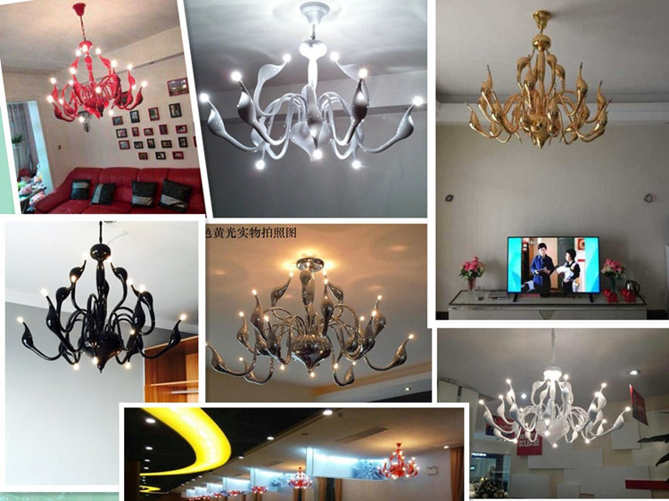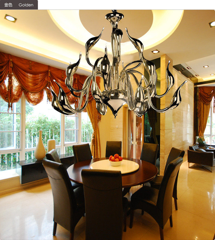 Современный арт-деко G4 Светодиодный светильник с лебедем, люстры для спальни, гостиной, Комнатные люстры, подвесные потолочные светильники Особенности: Глава 6 Dia65 * H50cm 9 головы Dia70 * H50cm Размер: 12 головок: Dia75 * H55 см 15 головок: Dia85 * H60cm 18 головок: Dia105 * H68cm 24 головки: Dia115 * H68cm Материал: железо Напряжение: 110-240 В Светильник Тип источника: G4 светодиодный Светильник включен или нет: Да