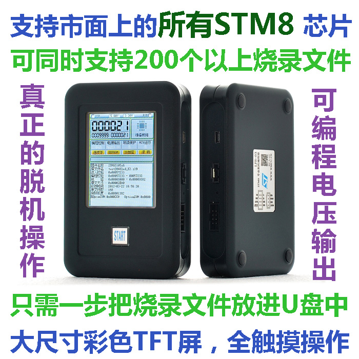 Автономная модификация параметров программирования,Автономный выбор чипов программирования,Выберите файл горения в случайном порядке.Автономное Программирование одной кнопкой,Выполняйте все Автономные операции, избавьтесь от компьютерной зависимости, избавьтесь от боли, которая не может быть онлайн, где пользоваться.Легко настроить пароль управления, защитить безопасность данных пользователя, предотвратить другие люди от неправильной эксплуатации.Простой в использовании, удобный, быстрый, высокоскоростной, безопасный, стабильный и надежный.Одна клавиша программирования, полное касание операции, без необходимости подключения компьютера может изменить сжигание файлов и чипов, реальная работа в автономном режимеПоддержка всех STM8S/STM8L/STM8A/и некоторых специальных моделей чипов STM8У простого интерфейса man-machine никогда не было опыта программирования. Он очень прост в использовании.Вы можете установить пароль для administrator и отключить подключение USB.Параметры программирования могут быть импортированы и экспортированы произвольно.Вы можете загрузить горящий файл непосредственно на программиста, и файл может быть изменен в любое время.Нет компьютерного диска, больше никаких проблем для подключения отдельных компьютеров.Без преобразования компьютера сгенерированные файлы компилятора копируются непосредственно на программист для использования на U-диске.Программист может непосредственно отображать информацию, связанную с файлами, проверку файлов, имя файла, размер, время и так далее.Программист имеет u-диск, и файл горения может быть использован непосредственно на u-диске.Программист может поддерживать до 200 или более файлов записи одновременно.Мощная коробка вывода информации, все детали операции могут отображаться на дисплее.Полноцветный TFT дисплей, полный сенсорный режим работы.Многократное автоматическое программирование обеспечивает выбор для ускорения скорости производстваЧип горения полон высокой скорости.Количество записей горения можно установить в любое время.Поддержка изменения имени чипа.Настоящий Профессиональный автономный программист.Очень дружественный пользовательский интерфейс.Двойной дисплей напряжения.Выходное напряжение программируется на выходе.Интерфейс автоматической горящей машины удобен для производства.Мощная функция подсчета, много видов методов подсчета.Все входные и выходные интерфейсы (USB порт, плавательный порт, программирование расширения), все с защитой от ESD.Защита от перегрузки по току, защита от обратного хода.Одна ключевая операция программирования, программирование никогда не ошибкаС расширенным интерфейсом управления программированием программирование может быть запрограммировано внешним контролем.Слева направо: расширенный интерфейс управления программированием, стандартный интерфейс программирования плавания, интерфейс USBСтандартный 4 линии интерфейсом для плавания, программируемый выходное напряжение, удобный для использования мишень доскаНебольшая часть простого интерфейса man-machine, следующим образом:Установите легко импортные и экспортные параметры, удобное использование и ежедневное управление, только LF8-03