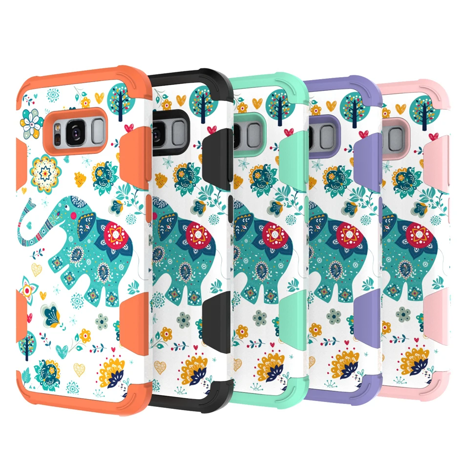 Ccdz для Samsung Galaxy S8 телефон случае 3 в 1 Heavy Duty противоударный 360 Животные слон цветок