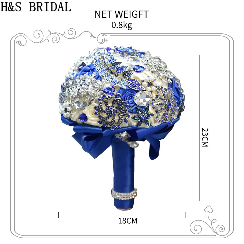 H & S Свадебная потрясающая брошь для невесты букет Королевский синий букет листьев хрустальные свадебные цветы Свадебные букеты свадебные аксессуары